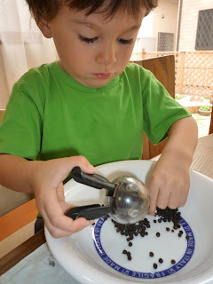 For those who have been reading my rambles for a while will know that I got rid of the Practical Life shelf a while back and changed it into an art shelf. I still but have a PL activity or two on the shelf upstairs. The other day though I had him doing some real work, I dropped my black pepper grinder into my carbonara mix the other day so I had to wash it all out and leave it to dry completely before refilling it. Enter Ebi-kun, he really enjoyed doing it, so much that he wanted me to empty the grinder so he could do it again!